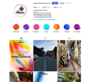 This is the Instagram of La Tejedora Distrito Creativo. I started this Instagram account and I was in charge of the Digital Marketing that we did with the Digital Marketing colaborator from 2014 to 2023, and from 2023 until my departure we experimented with a Digital Marketing Agency: