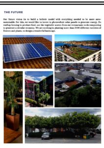 - Plans to install solar panels, rooftop farms, and composting systems.